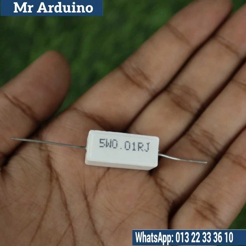 The 0.01 Ohm 5 Watt Resistor is an ultra-low resistance, high-power resistor designed for applications that require precise current measurement and power dissipation. With a resistance of only 0.01 Ohms and a power rating of 5 Watts, this resistor is primarily used in high-current sensing and power monitoring applications. It is commonly used in power supplies, battery management systems, and electric motor circuits to measure and control large currents efficiently without introducing significant resistance that could affect the overall circuit performance.