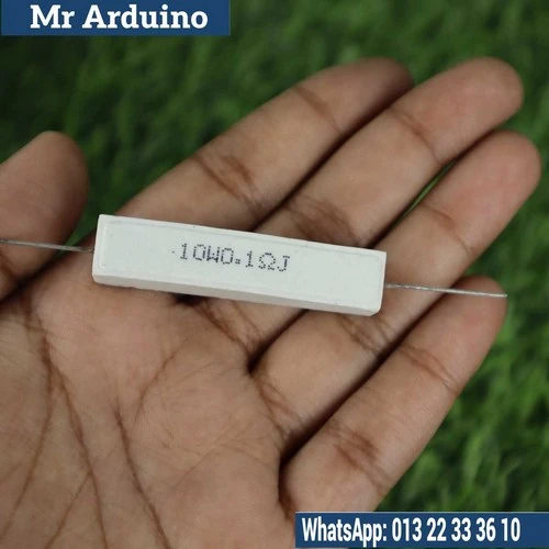 How it works: This 0.1 Ohm 10 Watt Resistor is designed to allow a large amount of current to pass through with minimal resistance (0.1 ohm), while still managing heat dissipation safely. When current flows through the resistor, it generates heat in proportion to the current and the resistance. The 10-watt power rating means that it can handle up to 10 watts of power dissipation without getting damaged. This makes it suitable for circuits that involve high current and require low resistance to control voltage or measure current.