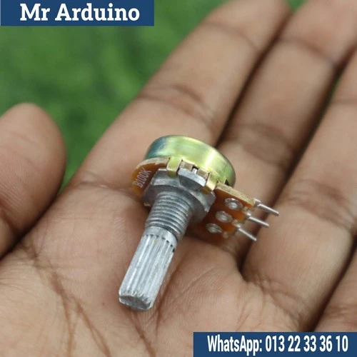 The potentiometer has three terminals and can be used either as a voltage divider or as a variable resistor depending on circuit configuration. By rotating the shaft, the output voltage or resistance can be smoothly controlled. This makes it ideal for fine tuning and adjustment in electronic circuits.
