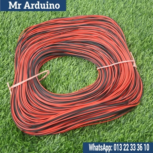 The 23/76 Red Black Thin Insulation Cable Per Yards (36 Inch) is a flexible double core wire designed for light power and low voltage wiring applications.