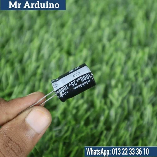 The 25V 1000uF Electrolytic Capacitor is a high-capacity, polarized capacitor commonly used in electronic circuits for energy storage, voltage regulation, and smoothing applications. With a capacitance value of 1000µF and a rated voltage of 25V, this capacitor is ideal for use in a wide variety of power supply systems, audio circuits, and signal processing applications where stable and consistent voltage is essential.