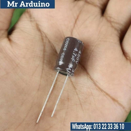 The 450V 4.7µF Electrolytic Capacitor is a high-voltage, high-capacitance component designed for use in power supply systems, filtering, and energy storage applications. With a capacitance of 4.7 microfarads (µF) and a voltage rating of 450 volts (V), this electrolytic capacitor is capable of handling higher voltage circuits while offering significant capacitance to smooth and stabilize power in electronic devices. Its robust construction makes it ideal for industrial, audio, and power electronics projects that require efficient energy storage and high-voltage operation.