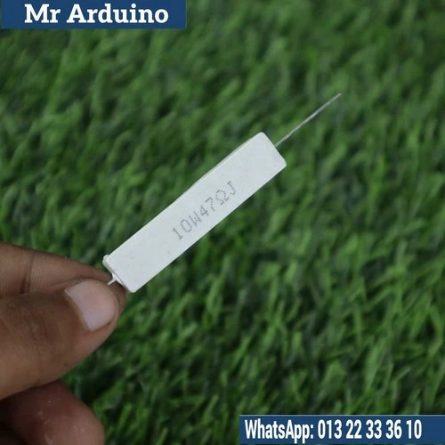 The 47 Ohm 10 Watt Resistor is a high-power, heavy-duty passive electronic component designed for circuits requiring a low resistance and the ability to handle significant power dissipation. With a resistance value of 47 ohms and a 10-watt power rating, this resistor is ideal for high-current applications such as power supplies, amplifiers, motor controllers, and LED drivers. Its ability to safely dissipate heat makes it a reliable choice for demanding electronic projects that involve larger amounts of power.