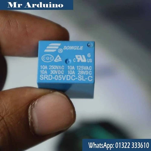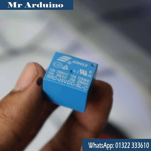 This relay features 5 pins, including coil terminals and COM, NO (Normally Open), and NC (Normally Closed) contacts, offering flexible switching options. It is commonly interfaced with Arduino, ESP8266, ESP32, and other microcontrollers using a transistor or relay driver circuit.