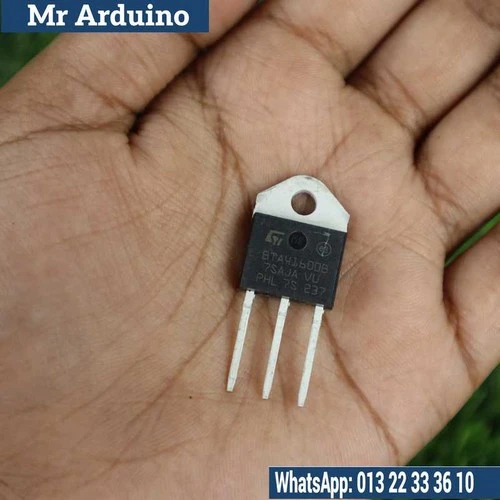 This TRIAC features an insulated tab package, which allows easy mounting on heat sinks without additional insulation. Due to its robust design and stable performance, the BTA41600 is widely used in automation systems, power controllers, and DIY AC switching projects.