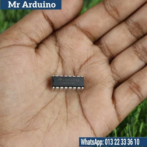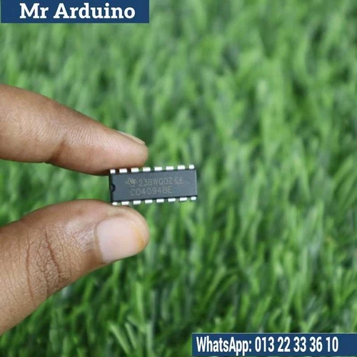 The CD4094 is a CMOS 8-bit serial-in, parallel-out shift register with output latches. It is commonly used in digital electronics to expand output pins, control LEDs, displays, relays, and other digital devices using only a few control lines from a microcontroller.