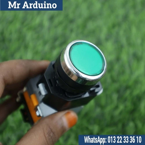 The switch has a green indicator light that illuminates when the switch is activated, providing a clear visual cue that the circuit is closed. It’s commonly used in control panels, DIY electronics, automated systems, and other projects where an intuitive visual feedback mechanism is important.