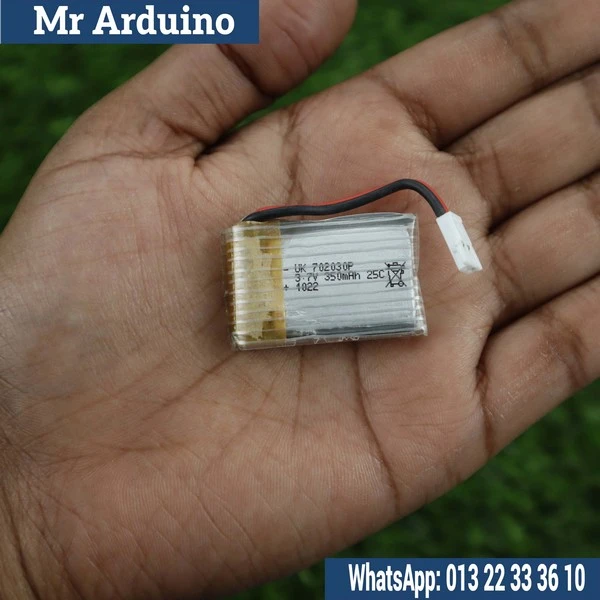 The 3.7V 350mAh 1S LiPo Battery is a compact, lightweight lithium polymer rechargeable battery perfect for powering low-power electronic projects and portable devices. With a single-cell (1S) configuration and 350mAh capacity, it delivers reliable energy in a small form factor, making it ideal for wearables, small RC models, mini robots, and embedded systems.