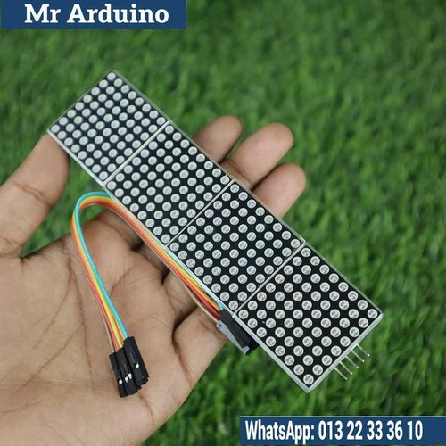 The MAX7219 4 Channel Dot Matrix Display Panel is a versatile module designed for displaying graphics, text, and animations in a compact form. Using the MAX7219 integrated circuit, this panel simplifies the control of multiple LED dot matrix displays, making it an ideal choice for DIY projects, digital signage, and educational applications.