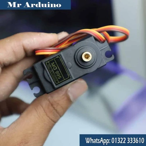 The Tower Pro MG995 is a widely utilized standard-sized servo motor known for its high torque and metal gear construction. It's favored in various applications, including radio-controlled (RC) vehicles, robotics, and industrial automation.
