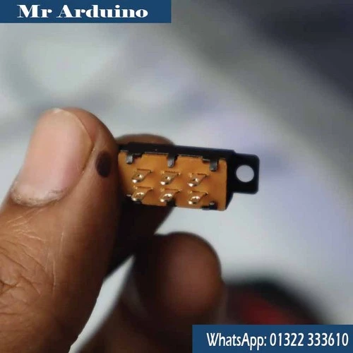 The switch operates by sliding the lever from one position to another, making it easy to use in control panels and small electronic devices. It is widely used in power switching, mode selection, polarity reversing, and signal control circuits. The slide switch can be easily mounted on PCBs and used with Arduino, power supplies, and general electronics circuits.