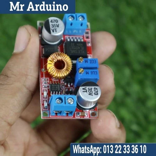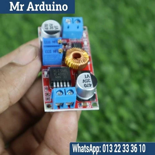 The XL 4015 is a DC-DC buck converter (step-down voltage regulator) used for efficiently converting a higher input voltage to a lower output voltage. It is built around the XL4015 integrated circuit and is typically used in power supply applications, where reducing voltage while maintaining efficiency is critical. The XL 4015 is capable of handling higher output currents compared to similar modules, making it suitable for powering a wide range of devices, including Arduino, Raspberry Pi, LED strips, and other electronics that require a stable lower voltage.