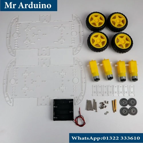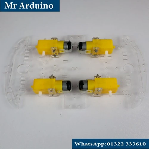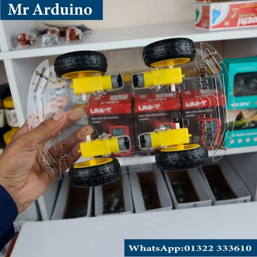 This chassis is widely used with Arduino, ESP32, and other microcontrollers along with motor drivers such as L298N or L293D. It provides sufficient space to mount sensors like ultrasonic modules, IR sensors, line-following sensors, batteries, and control boards.