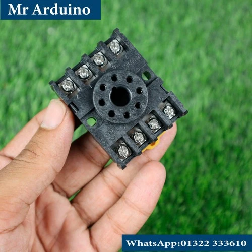 The MK2P-I Base Round Shape 8 Pin is a relay socket designed to accommodate the MK2P-I series relays, commonly used in industrial and automation applications. This socket features an 8-pin round configuration, facilitating easy integration and secure mounting of the relay.