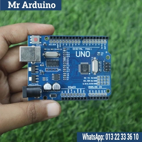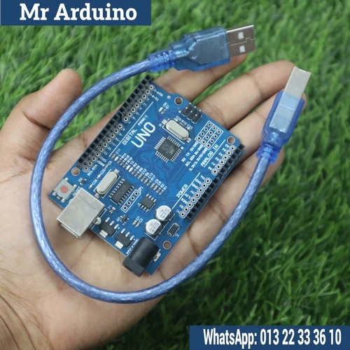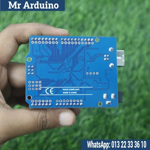 The Arduino Uno SMD is a microcontroller board based on the ATmega328P, featuring a surface-mount device (SMD) design for a more compact form factor. It includes 14 digital input/output pins (6 of which can be used as PWM outputs), 6 analog inputs, a 16 MHz ceramic resonator, a USB connection, a power jack, an ICSP header, and a reset button. This board is ideal for various electronic projects and rapid prototyping.