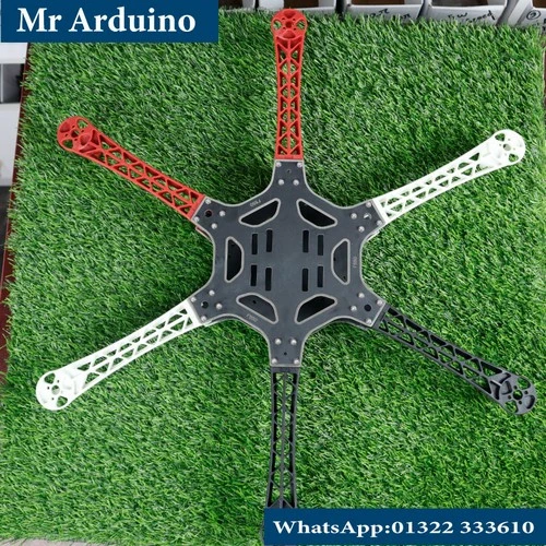 F550 Hexacopter Frame is a robust multi-rotor drone frame designed to support six BLDC motors, offering better stability, lifting capacity, and redundancy compared to quadcopter frames. The frame is made from high-quality plastic and fiberglass materials, providing an excellent balance between strength and weight.