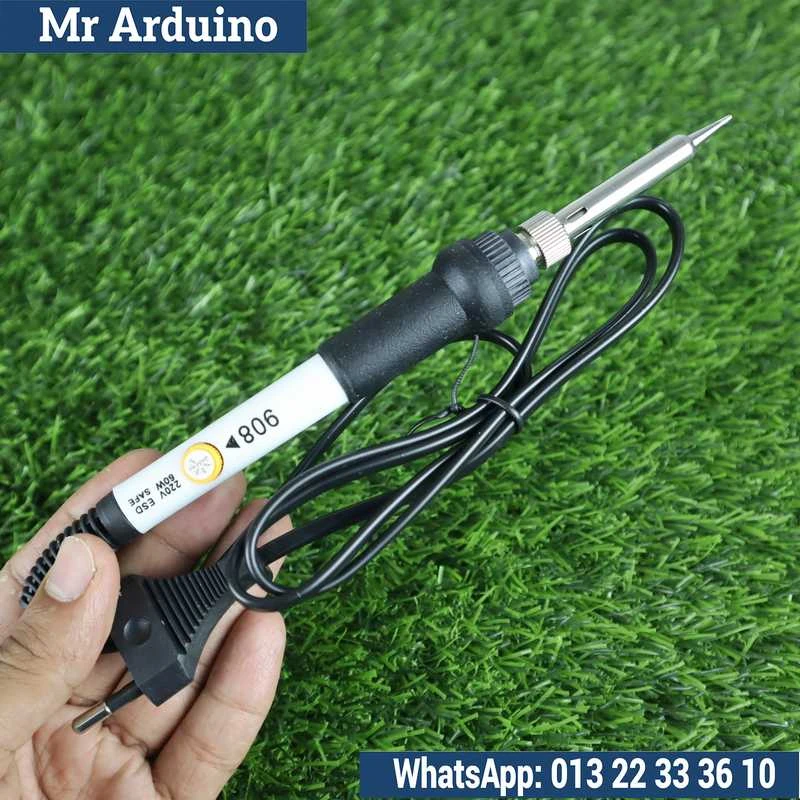 The soldering iron features a durable heating element and a fine metal tip, making it ideal for soldering components such as resistors, capacitors, ICs, wires, and connectors on PCBs. Its ergonomic handle provides a comfortable grip, enabling extended use without fatigue.